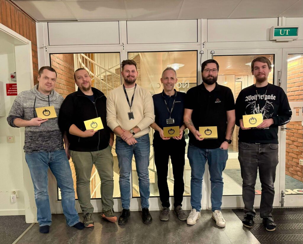 Besöket uppe i norr avslutades med att tekniker från Core IT och Tobias från oss fick ta emot både certifikat och en alldeles egen NetWall 100s i guld från Clavister, detta då samtliga klarat av NetWall Expert certifikatet. Något som självklart ska firas!